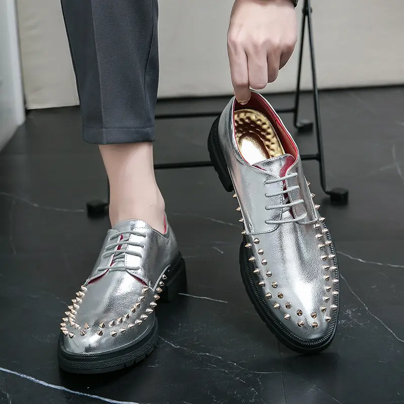BRITISH STYLE NIGHTCLUB RIVET POINTED LEATHER SHOES