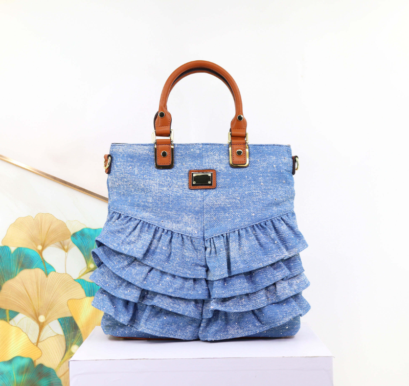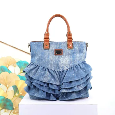 Flouncing Denim Material Hand Bag